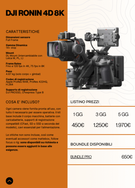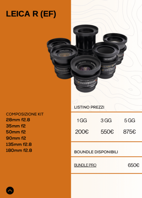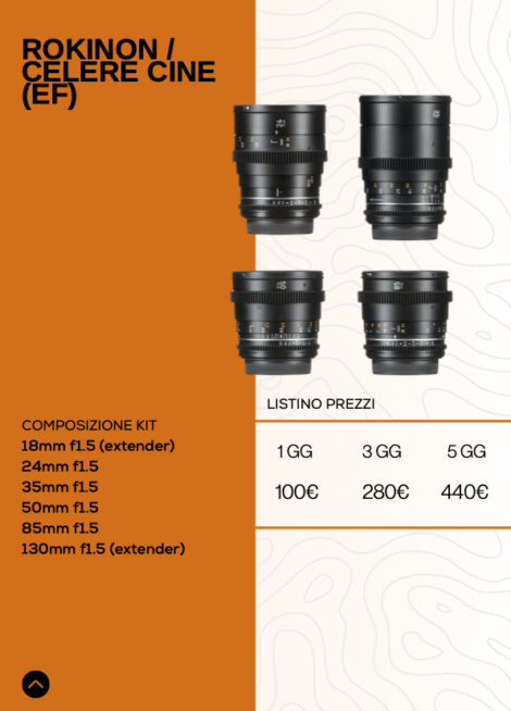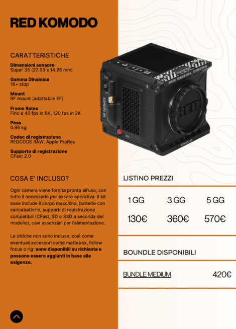 ” Macchine da presa, lenti e luci, tutto per i tuoi progetti. Noleggia i prodotti singolarmente oppure controlla i nostri bundle ad hoc per ogni situazione “
