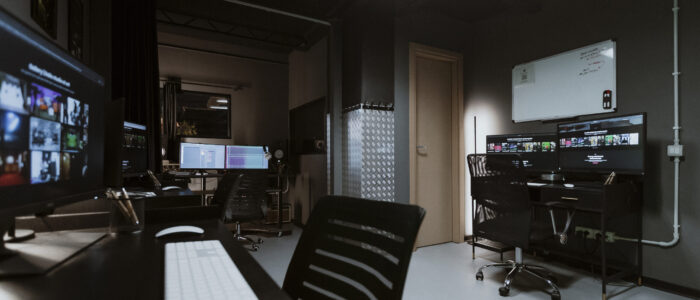 ” In questo spazio nasce il ritmo del film. La sala di montaggio รจ dove le riprese si trasformano in un racconto coerente e avvincente. Grazie a software professionali e a una visione creativa, ogni sequenza viene selezionata, ordinata e rifinita con precisione. ร qui che le idee si concretizzano, dando forma a una narrazione fluida, dinamica e pronta per il pubblico. “